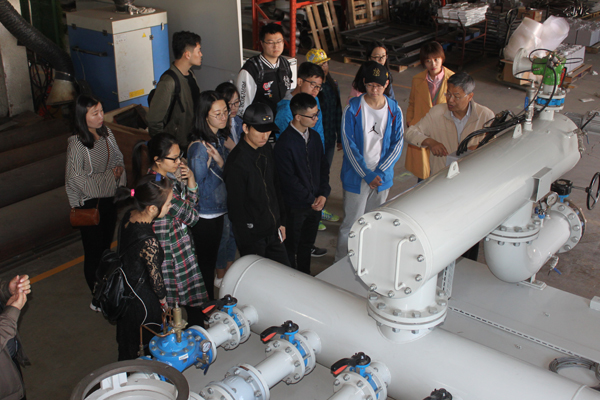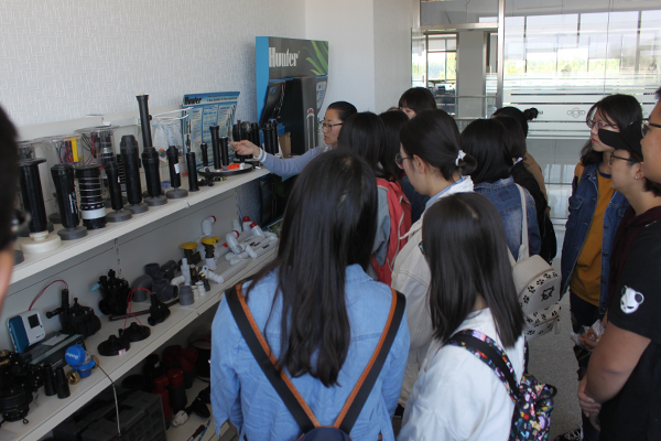 隨后,李總與師生們一起,觀看了草坪綠地灌溉噴灑、造霧系統設備的現場演示,參觀了產品展廳,了解了泵站的原理性能和生產工序。綠友集團派專人為大家作詳細地講解和介紹。