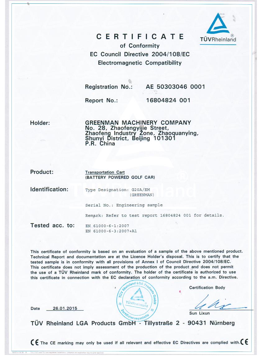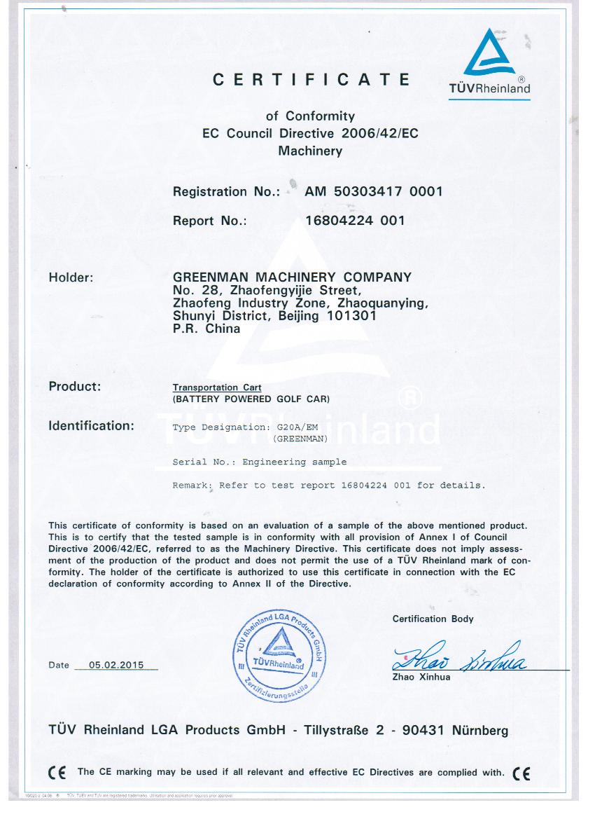 綠友集團自主研發的GREENMAN兩座電瓶車golf car通過了CE認證。