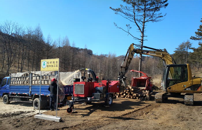 綠友集團總部森防裝備事業(yè)部、售后服務(wù)部、撫順綠友園林機械有限公司協(xié)同在撫順市大伙房實驗林場現(xiàn)場給參會人員講解、演示了GREENMAN CM15R病疫木粉碎機、CH25C病疫木粉碎機在山場就地粉碎處理感染松材線蟲病疫木方案,與會嘉賓紛紛記錄、拍照,索取資料,積極響應(yīng)國家關(guān)于松材線蟲病疫木山場就地粉碎處理的相關(guān)政策。
