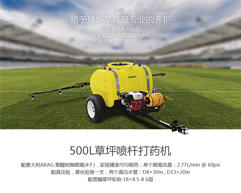 500L拖掛式機動噴霧機,配有500L大容量藥箱,可以配置不同的拖掛主機使用,作業效率高。